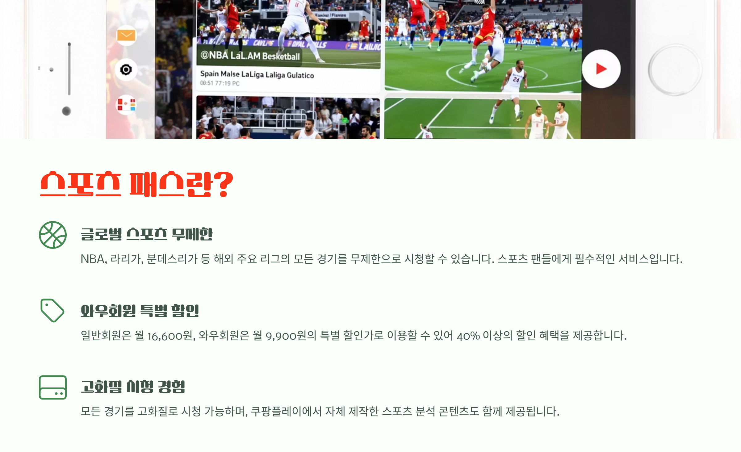 스포츠 패스는 쿠팡플레이에서 제공하는 특별한 콘텐츠 모음이에요. ⚽️🏀