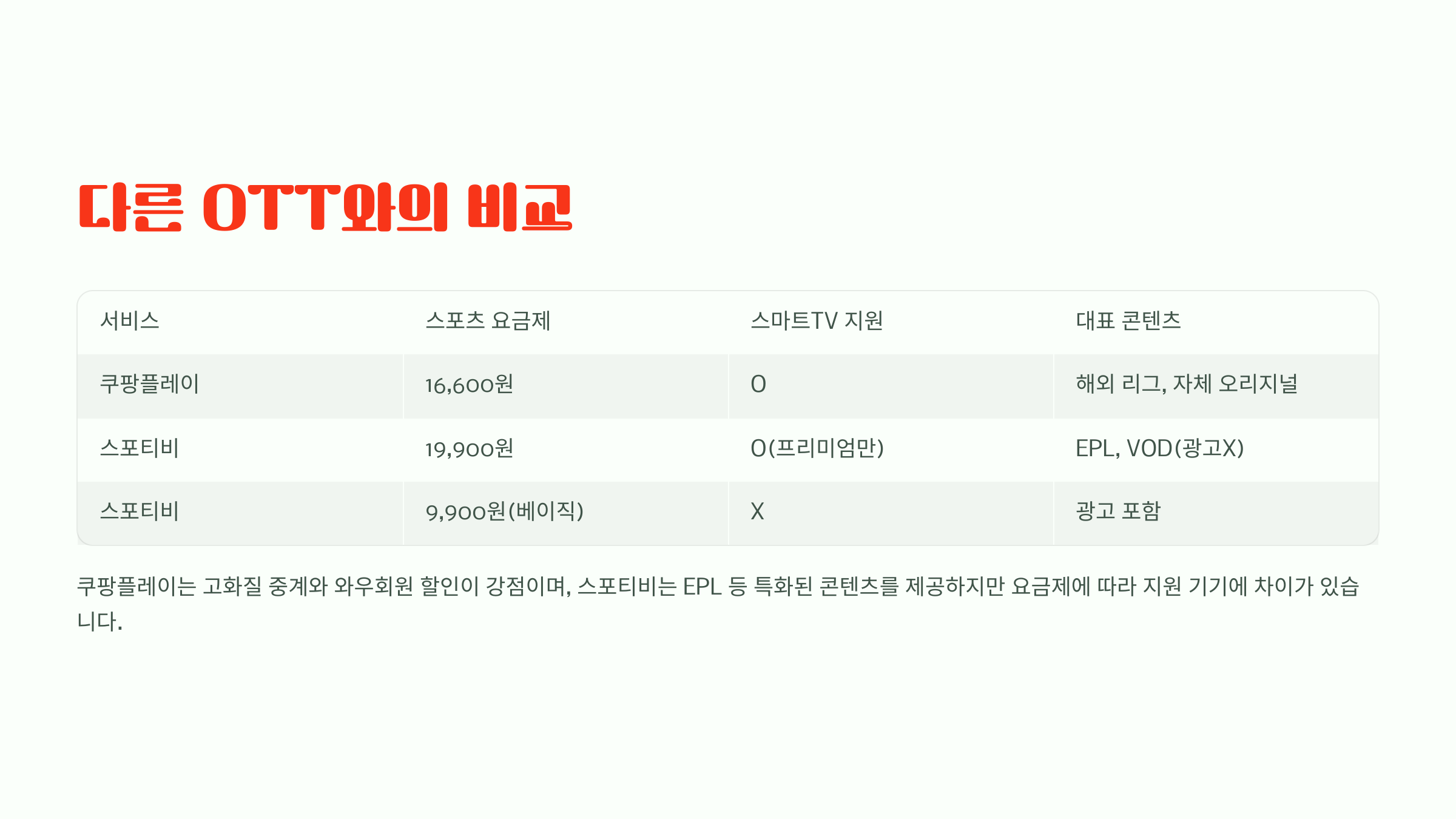 쿠팡플레이 | 7,890원 | 스포츠 생중계 + 쇼핑 혜택 |