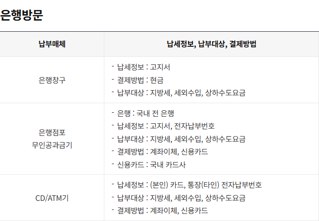 A3. 은행, ATM, 위택스, 스마트폰 앱 등 다양한 방법이 있어요.