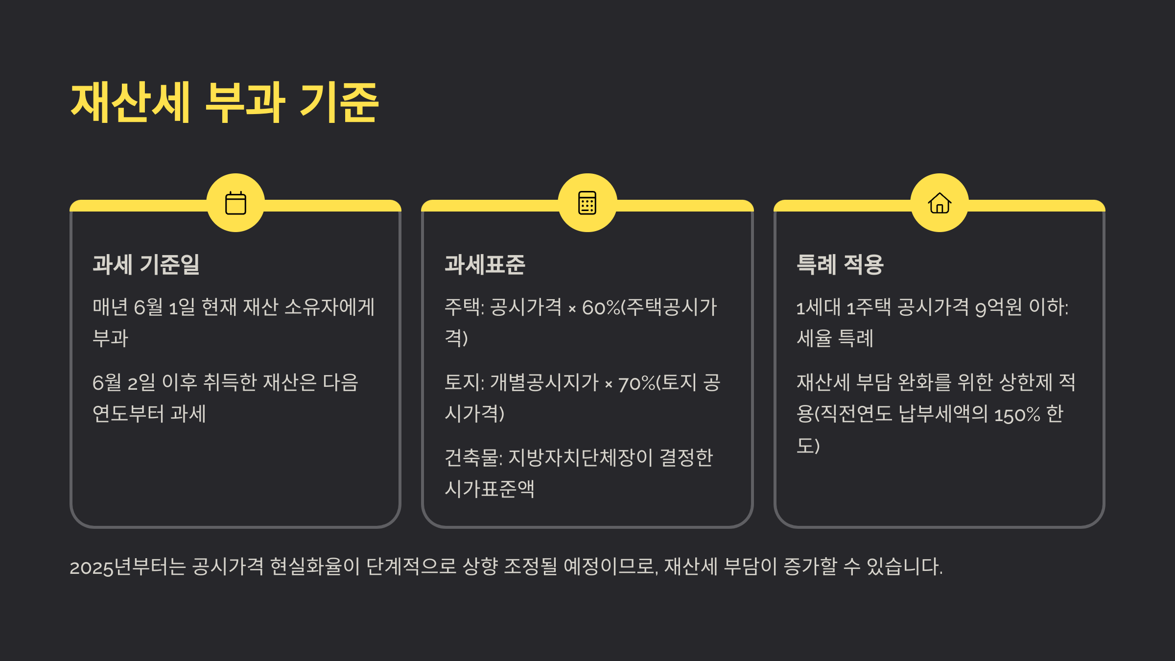 2025년에는 특히 공동주택 공시가격 변동과 주택시장 변화로 인해 재산세 부담이 전년과 다를 수 있으니, 꼭 꼼꼼히 체크해보는 게 좋아요.